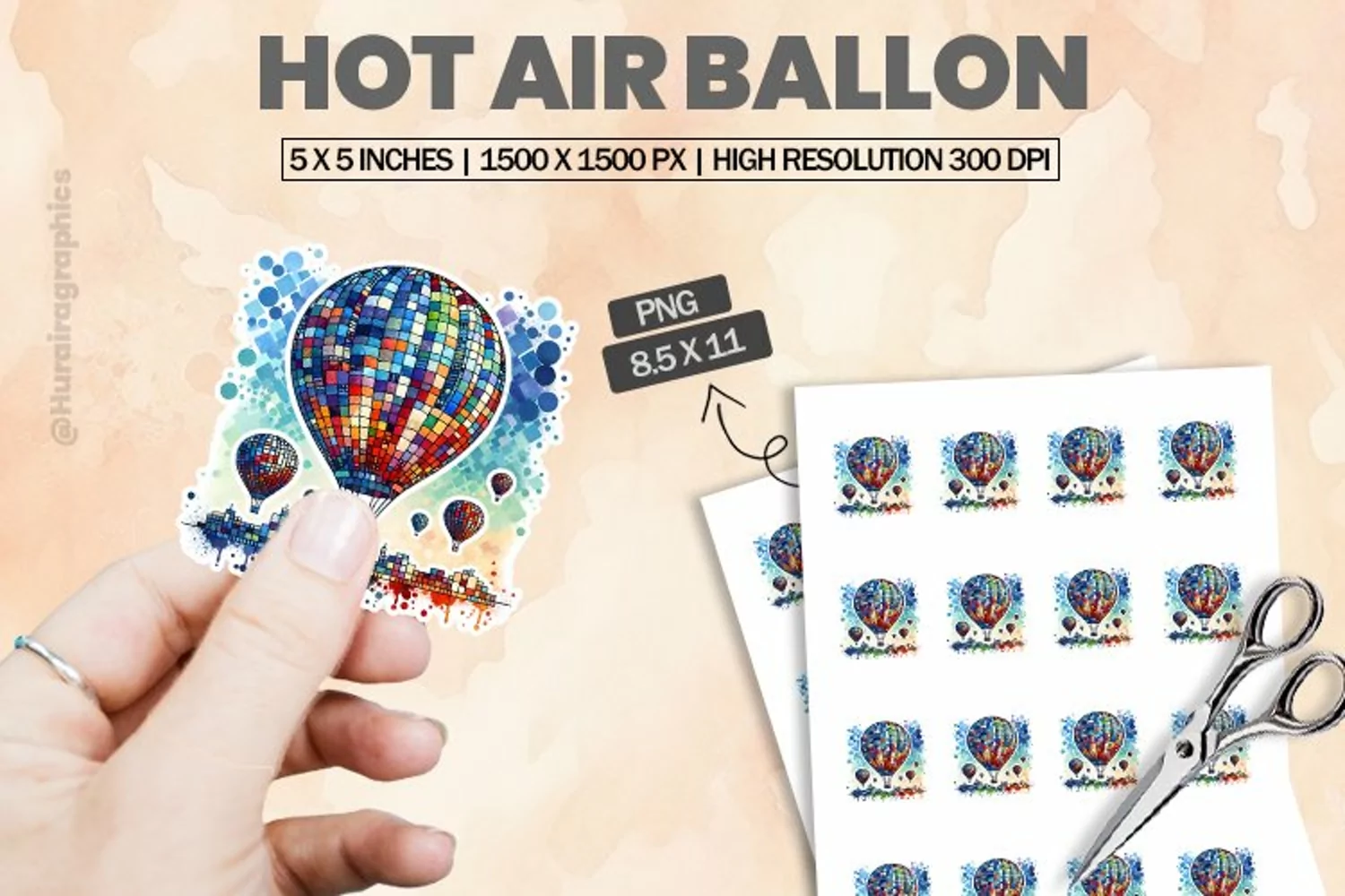 Printable Stickers Hot Air Ballon Printable Sticker Print And Cut Stickers Sticker Png Sticker Sheet Cute Sticker Animal Sticker Cut Sticker Sheet