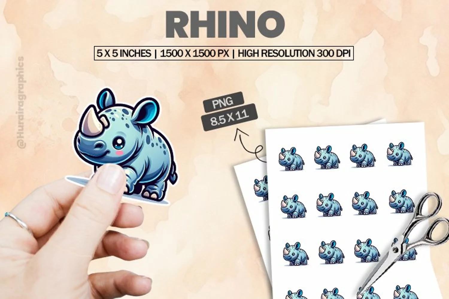 Similar Design Products to Rhino|Printable Animal Sticker
