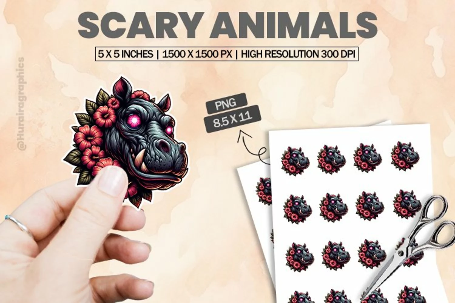 Printable Stickers Printable Sticker Print And Cut Stickers Sticker Png Sticker Sheet Cute Sticker Animal Sticker Scary Animal Cut Sticker Sheet