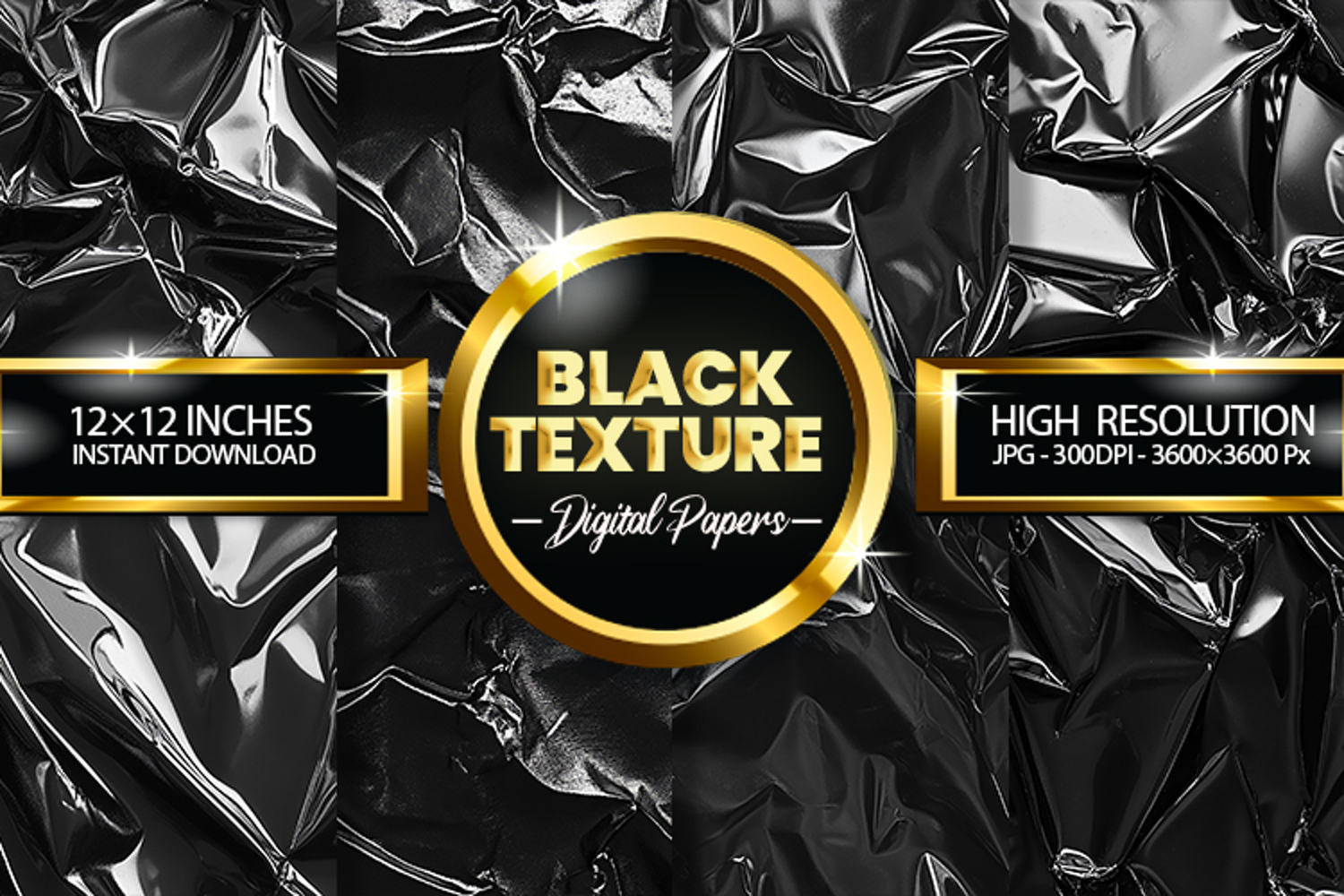 Black Texture Digital Paper Crumpled Foil Texture Shiny Black Background High Resolution Black Texture Glossy Paper Texture 12x12 Digital Texture Metallic Black Pattern Abstract Foil Digital Paper Printable Black Texture Modern Black Surface