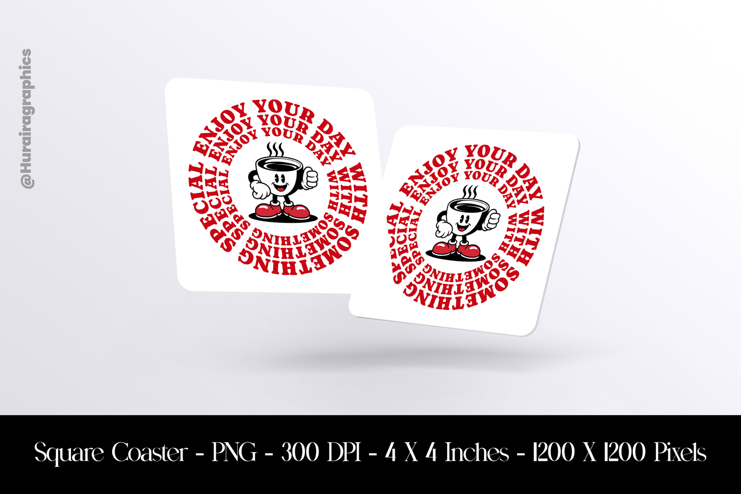 Coaster Design Retro Coffee Design Square Coaster Sublimation Square Coaster Png Sublimation Coaster Png Cute Coaster Coaster Design Png Enjoy Your Day Quote Vintage Cartoon Mug Funny Drink Coaster