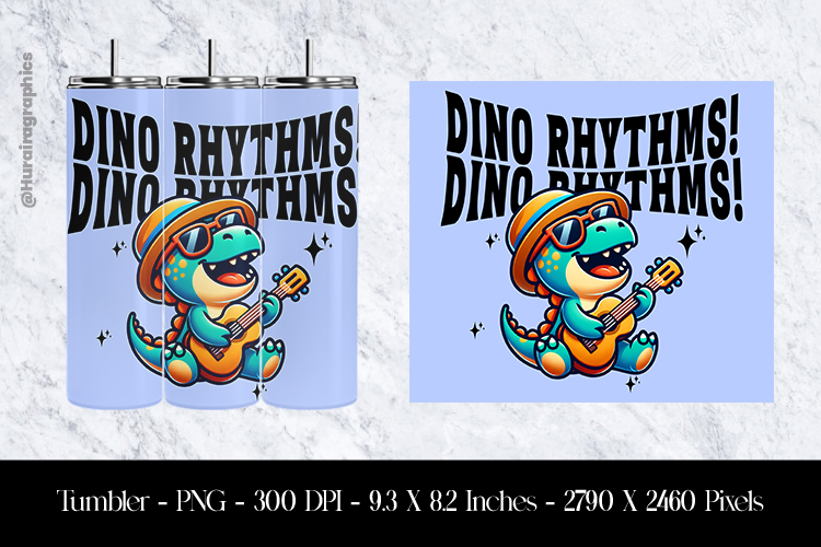 Dino Rhythms Dinosaurs Tumbler Sublimation Design PNG example image 1