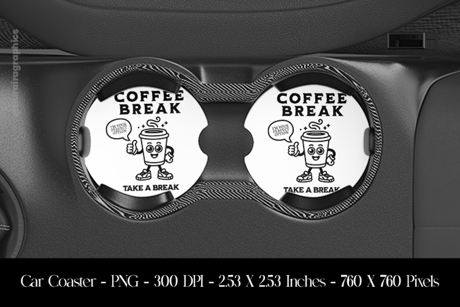Coffee Break Take a Break Car Coaster Sublimation Design