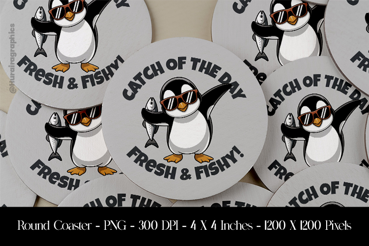 Sublimation Cute Penguin Sublimation Printing Fish Sublimation Catch Of The Day Sublimation Coaster Sublimation Round Coaster Sublimation Coaster Png Round Coaster Png Fresh And Fishy