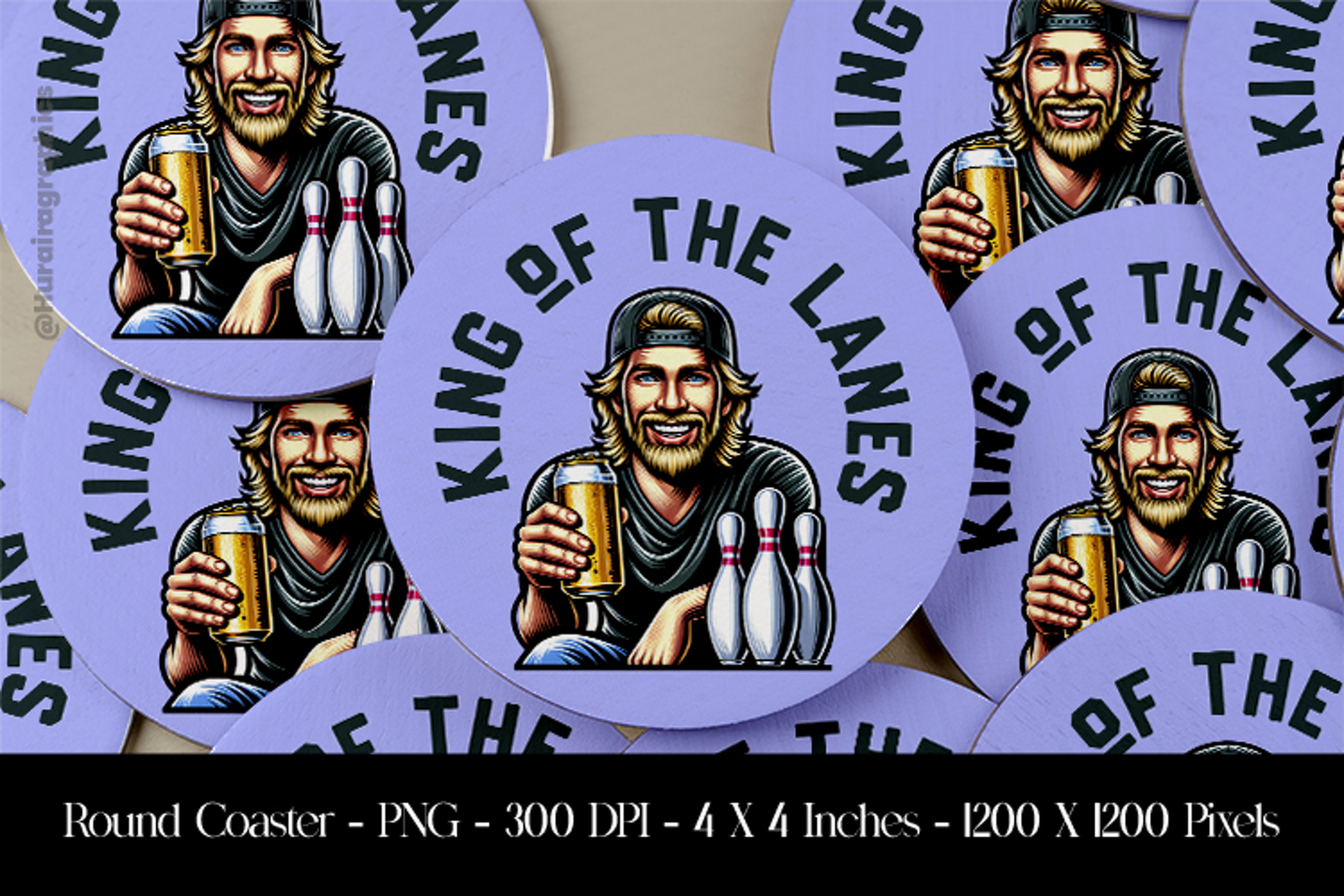 King Of The Lanes Round Coaster Sublimation Design example image 1