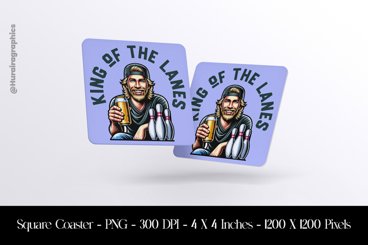 Sport Coaster Design Bowling King Square Coaster Sublimation Square Coaster Png Bowling Game Cute Coaster Coaster Design Png Lanes Bowling Lanes Sublimation