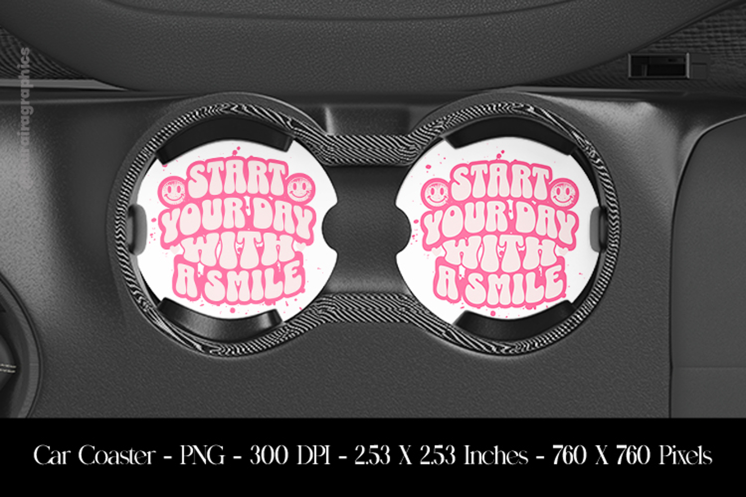 Start Your Day With A Smile Car Coaster Sublimation Design example image 1