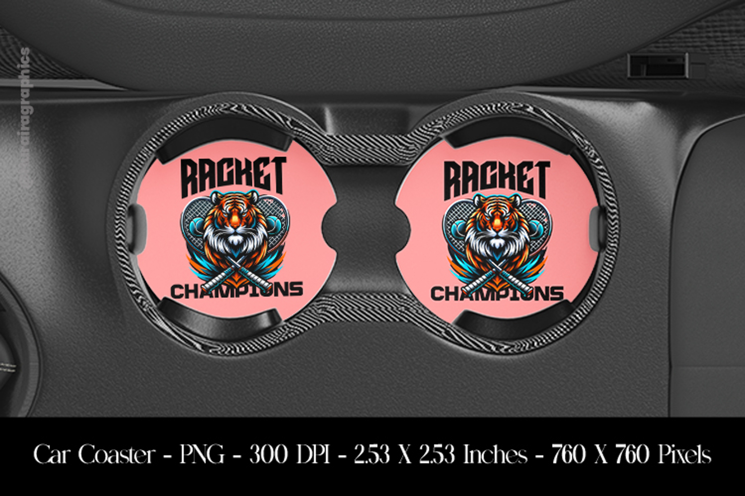 Racket Champions Tiger Car Coaster Sublimation Design
