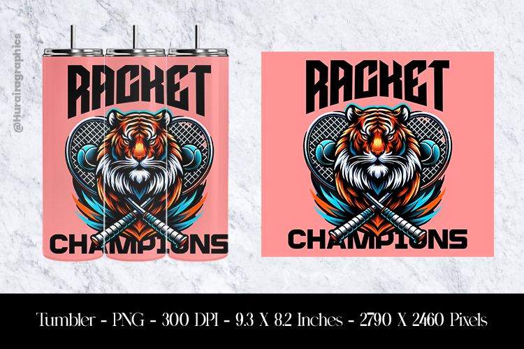 Racket Champions Tiger Tumbler Sublimation Design PNG