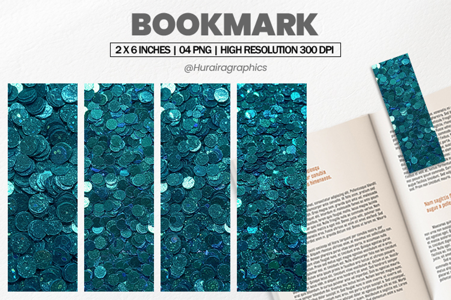 Teal Sequin Glitter Bookmark PNG, Bookmark Sublimation example image 1