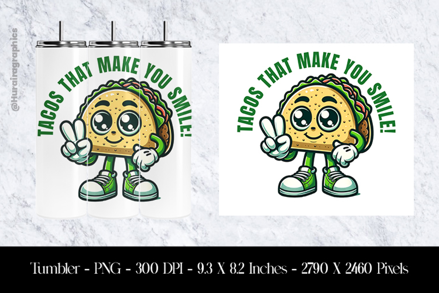 Tacos That Make You Smile Tumbler Sublimation Design PNG