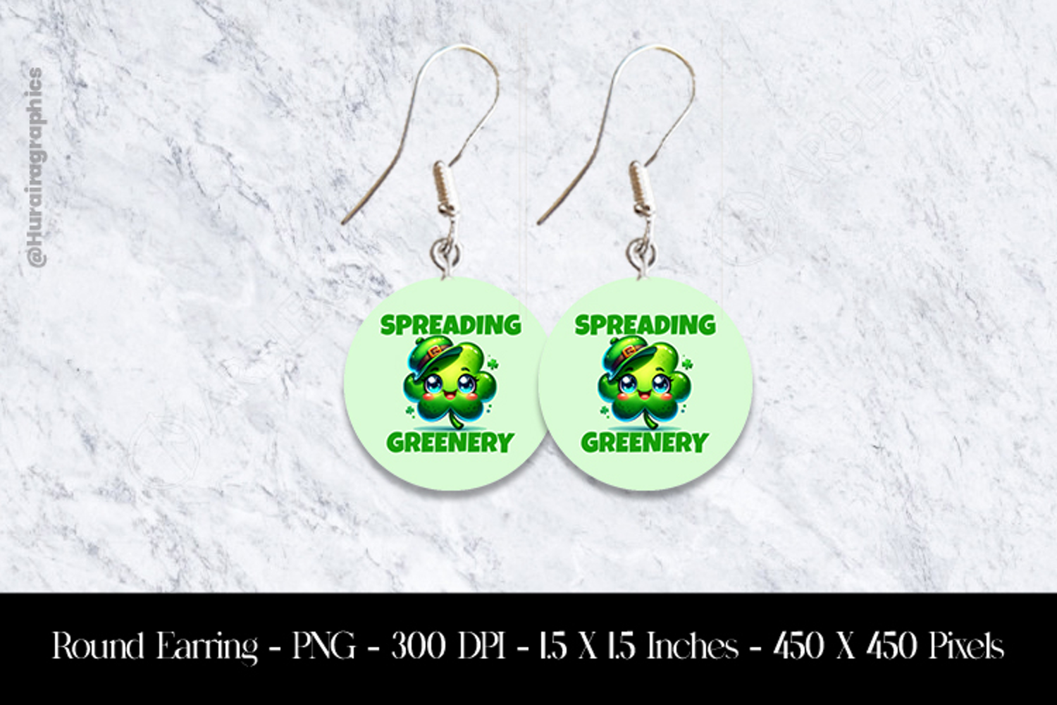 Spreading Greenery Round Earring Sublimation Design example image 1