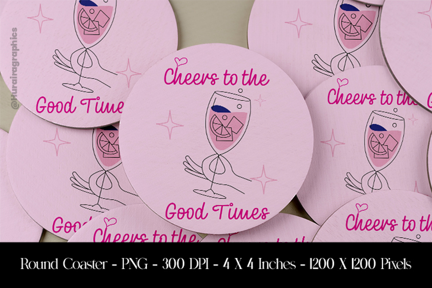 Cheers To The Good Times Round Coaster Sublimation Design example image 1
