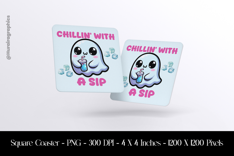 Boo Sip Coaster Design Square Coaster Sublimation Square Coaster Png Funny Boo Cute Coaster Coaster Design Png Chillin With A Sap Boo Dringing