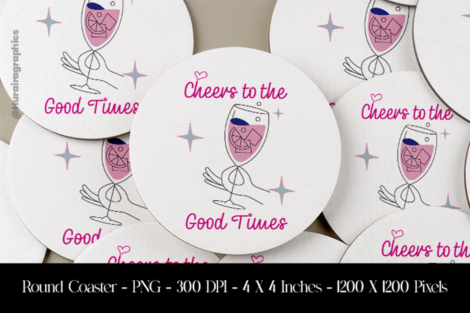 Cheers To The Good Times Round Coaster Sublimation Design example image 1