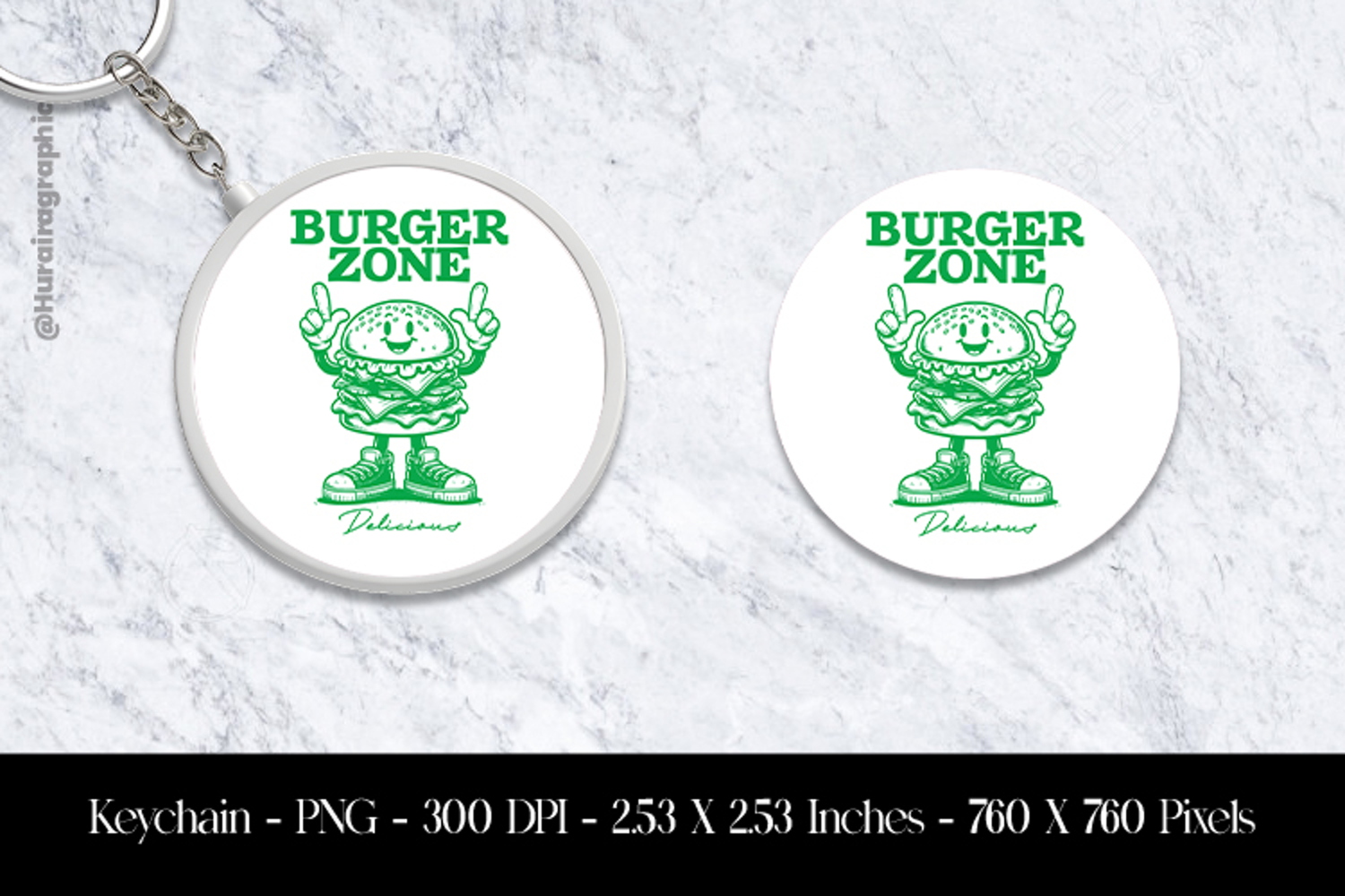 Burger Zone Keychain Sublimation Design PNG example image 1