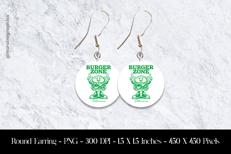 Burger Zone Round Earring Sublimation Design example image 1