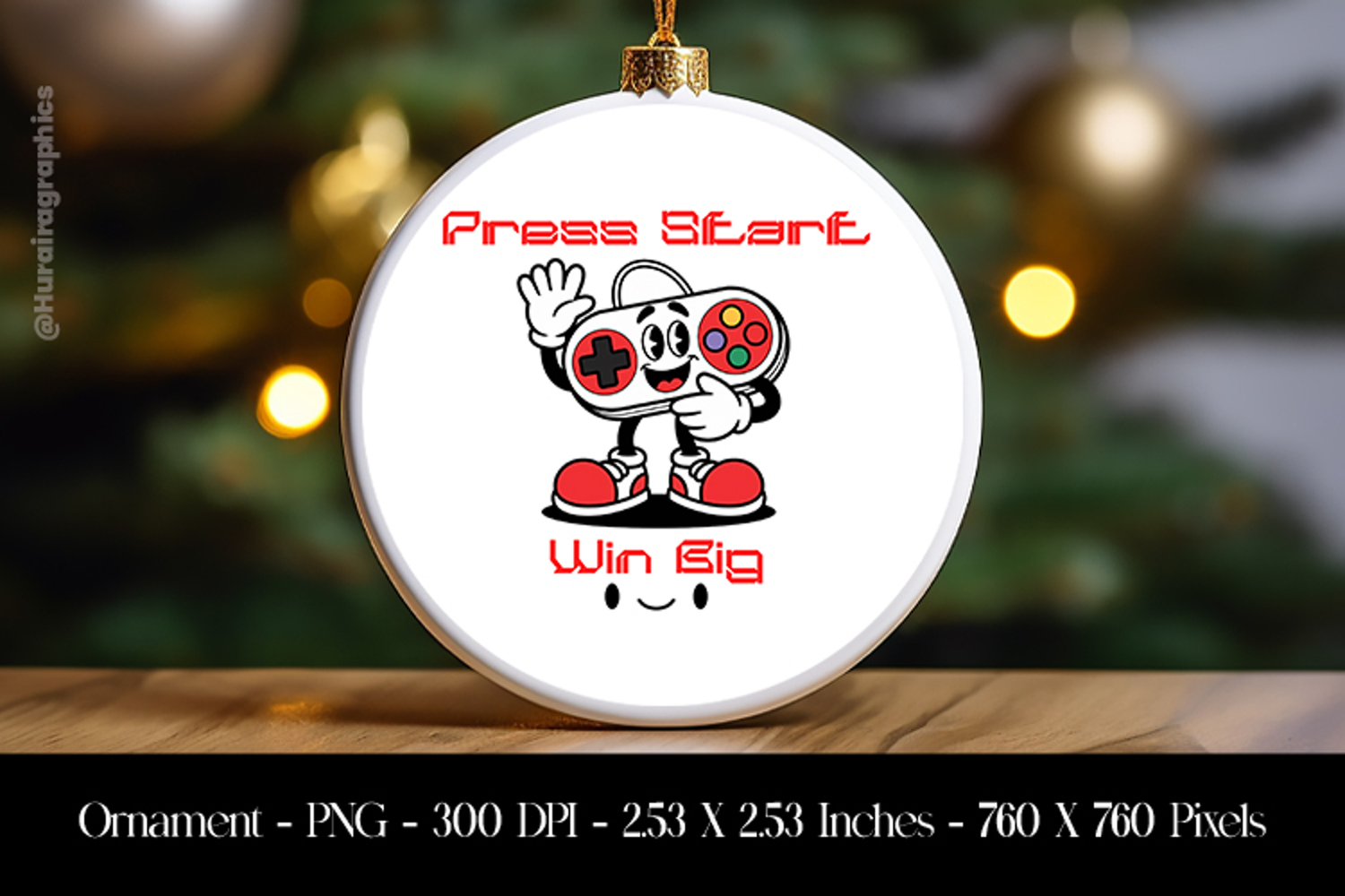 Press Start Win Big Ornament Sublimation Design PNG example image 1