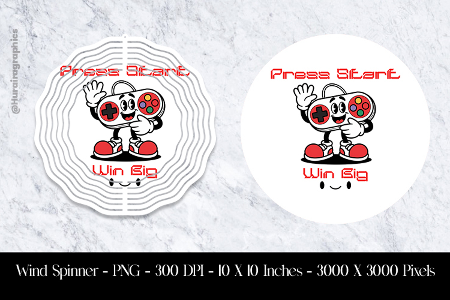 Press Start Win Big Wind Spinner Sublimation Design PNG example image 1