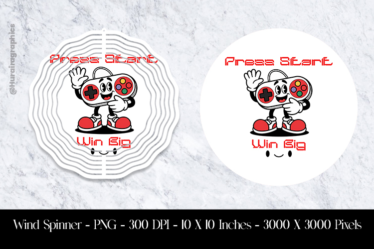 Press Start Win Big Wind Spinner Sublimation Design PNG