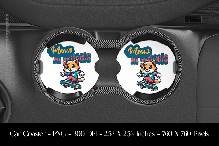 Meow Al Wheels Car Coaster Sublimation Design example image 1