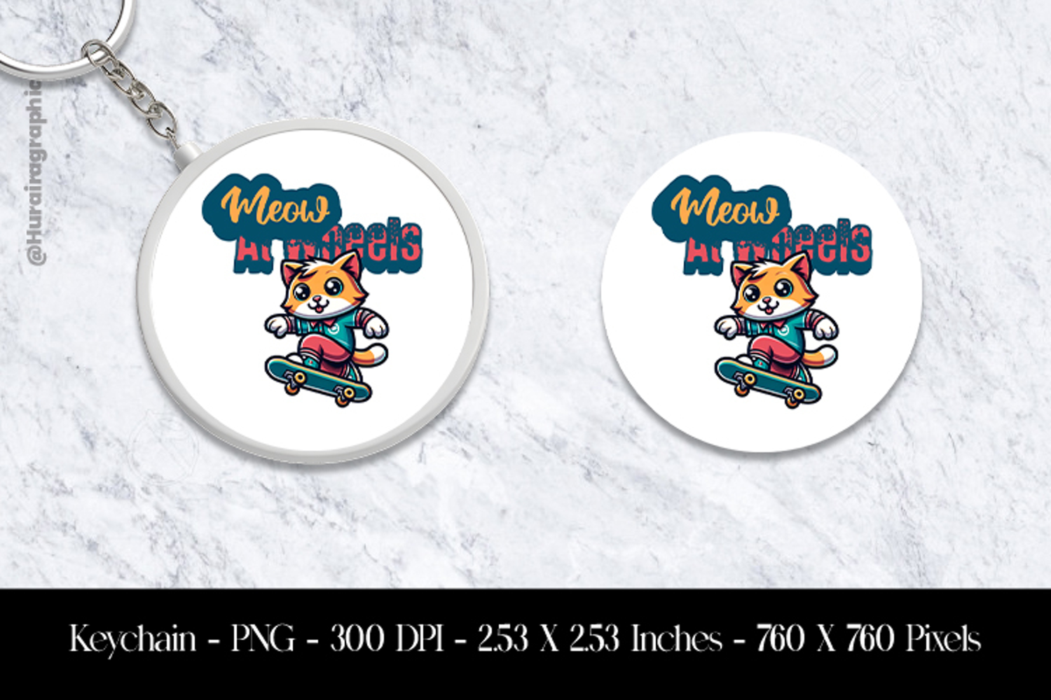 Meow Al Wheels Keychain Sublimation Design PNG example image 1
