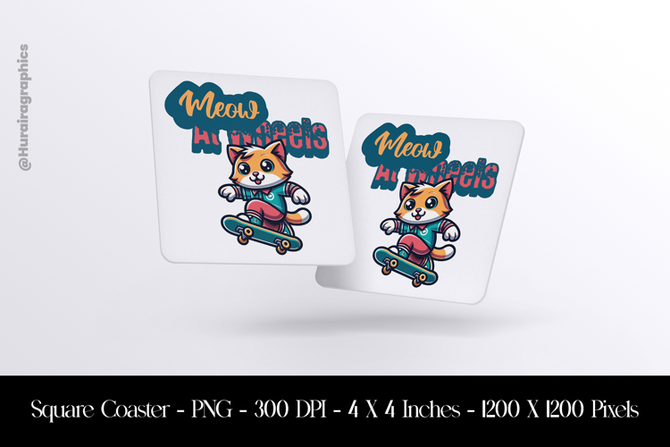 Meow Al Wheels Square Coaster Sublimation example image 1