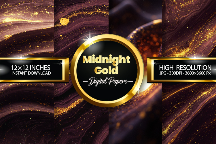 Digital Paper Background Metallic Midnight Sublimation Scrap Book Digital Paper Set Midnight Background Midnight Gold Digital Papers Midnight Gold