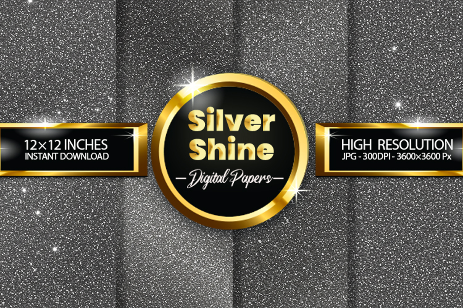 Silver Shine Glitter Digital Papers - 04 Variations example image 1