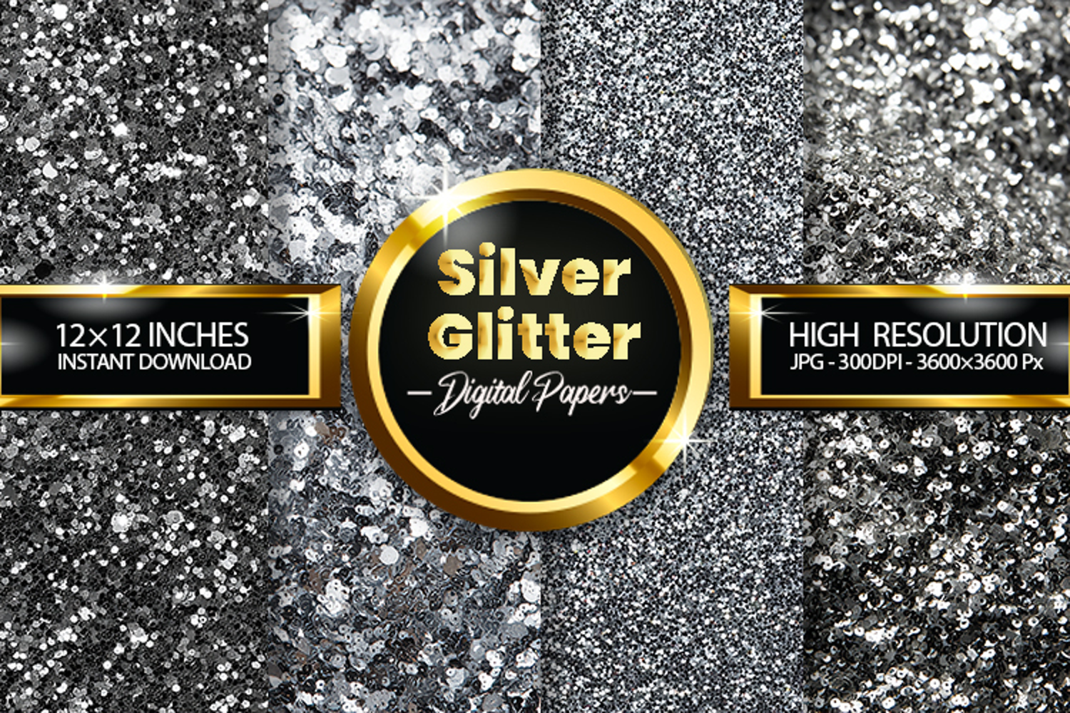 Silver Glitter Digital Papers - 04 Variations