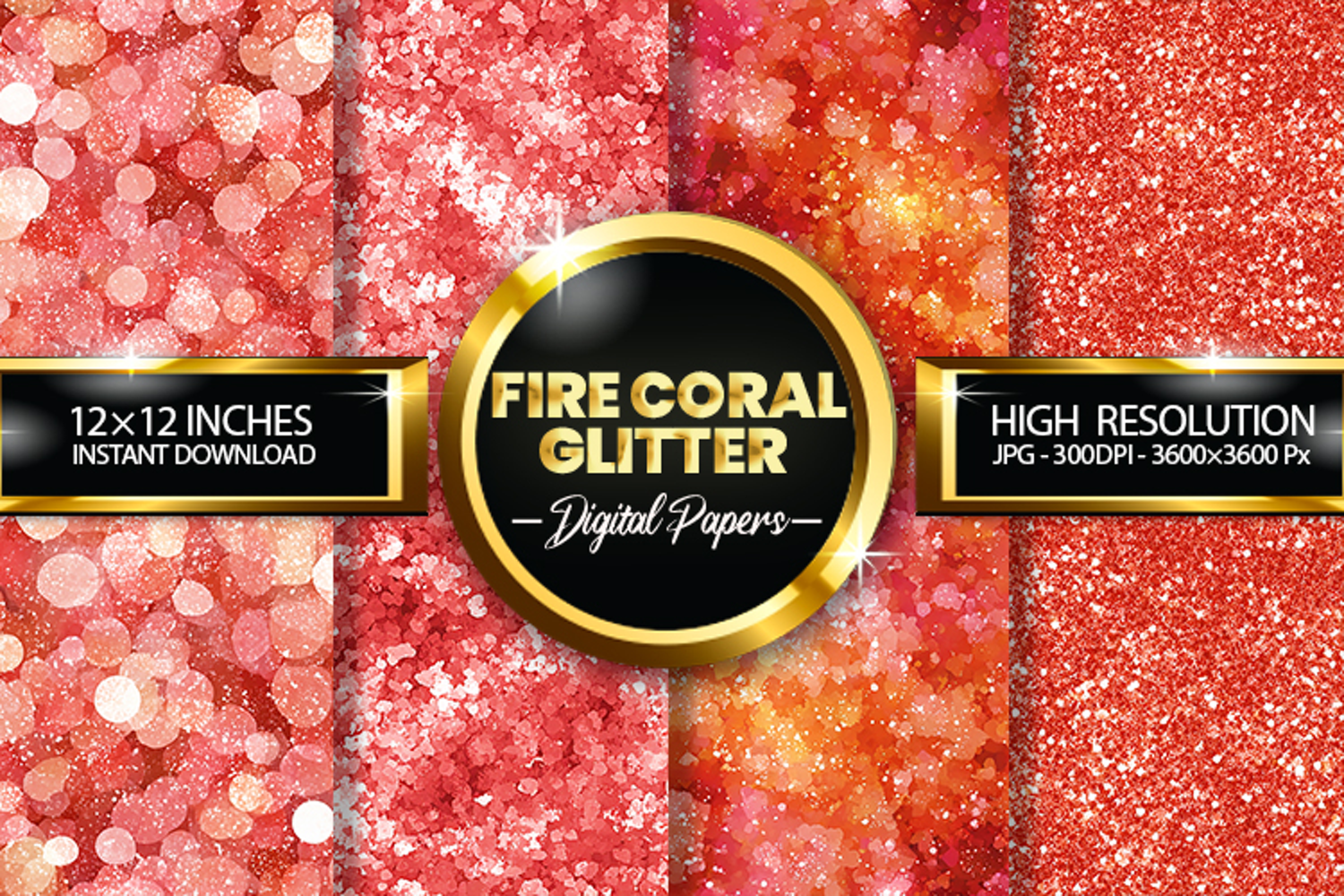 Fire Coral Glitter Digital Papers - 04 Variations