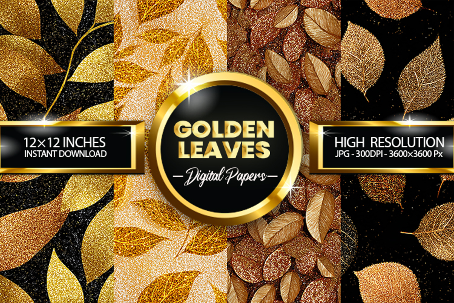 Similar Design Products to Golden Leaves Glitter Digital Papers - 04 Variations