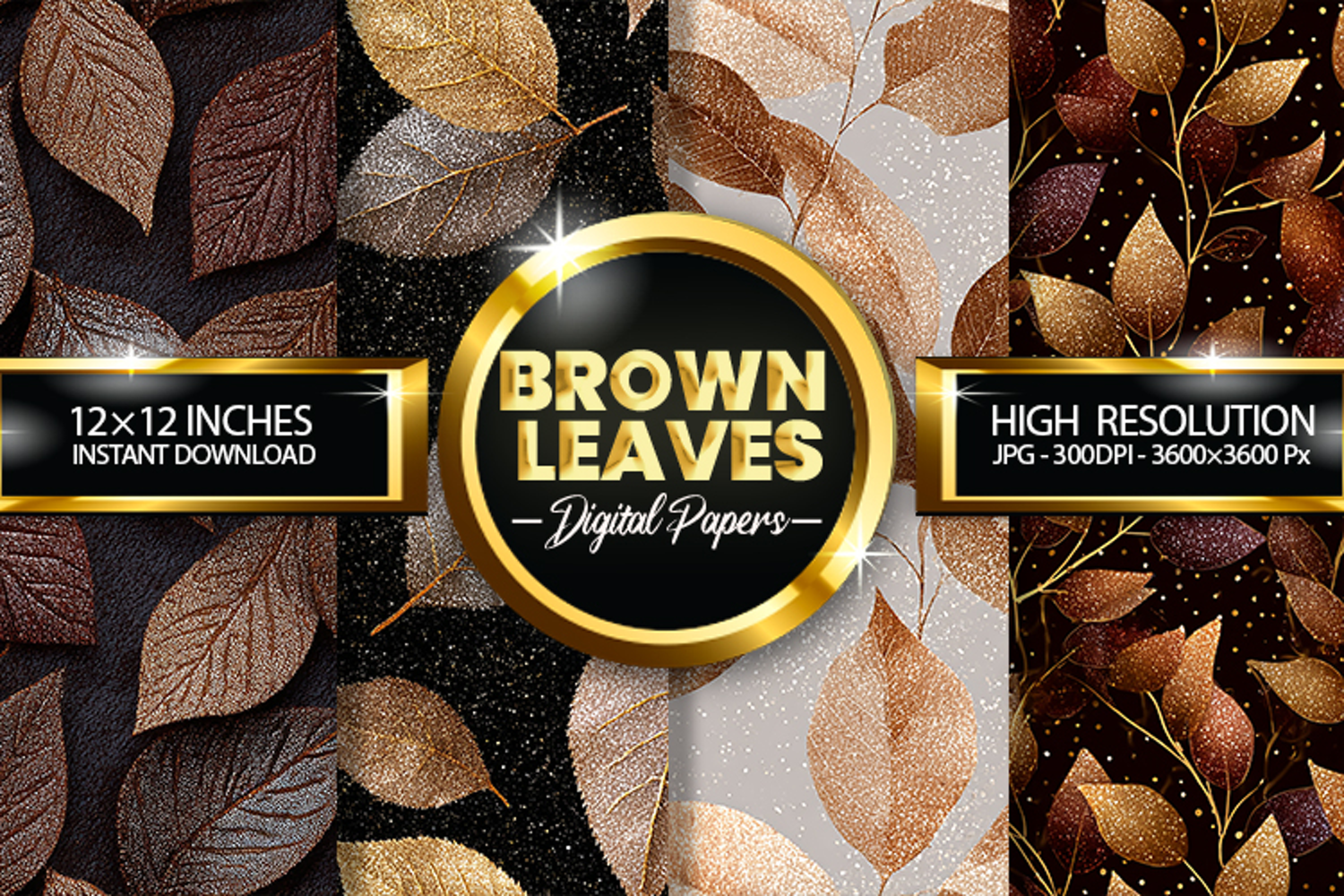 Similar Design Products to Brown Leaves Glitter Digital Papers - 04 Variations