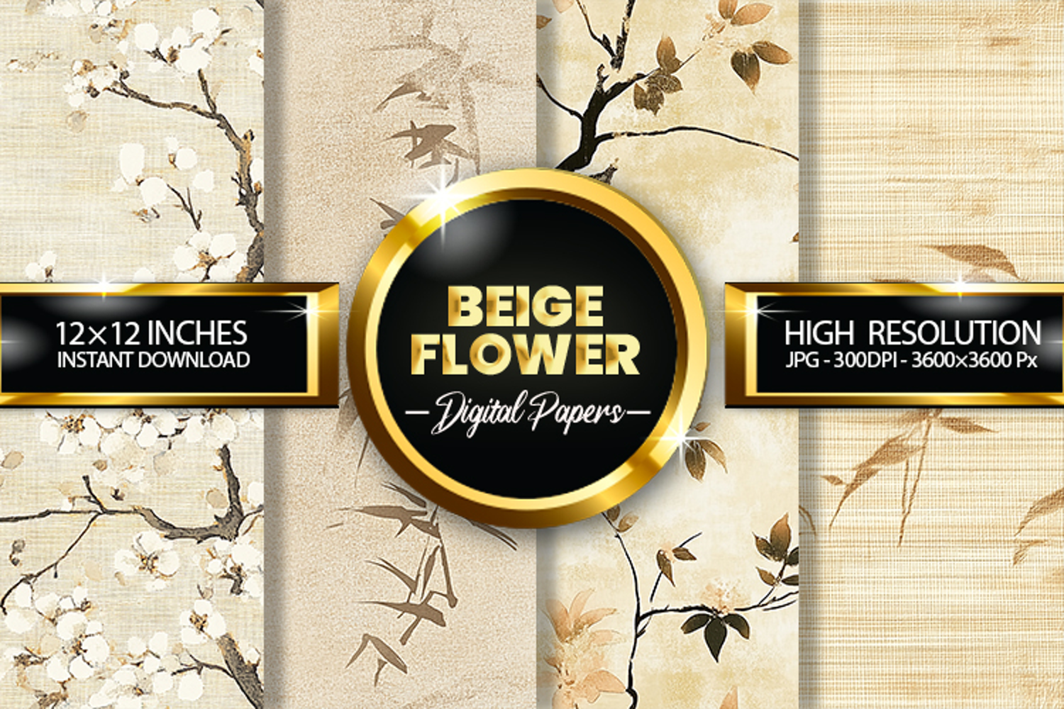 Beige Flower Glitter Digital Papers - 04 Variations