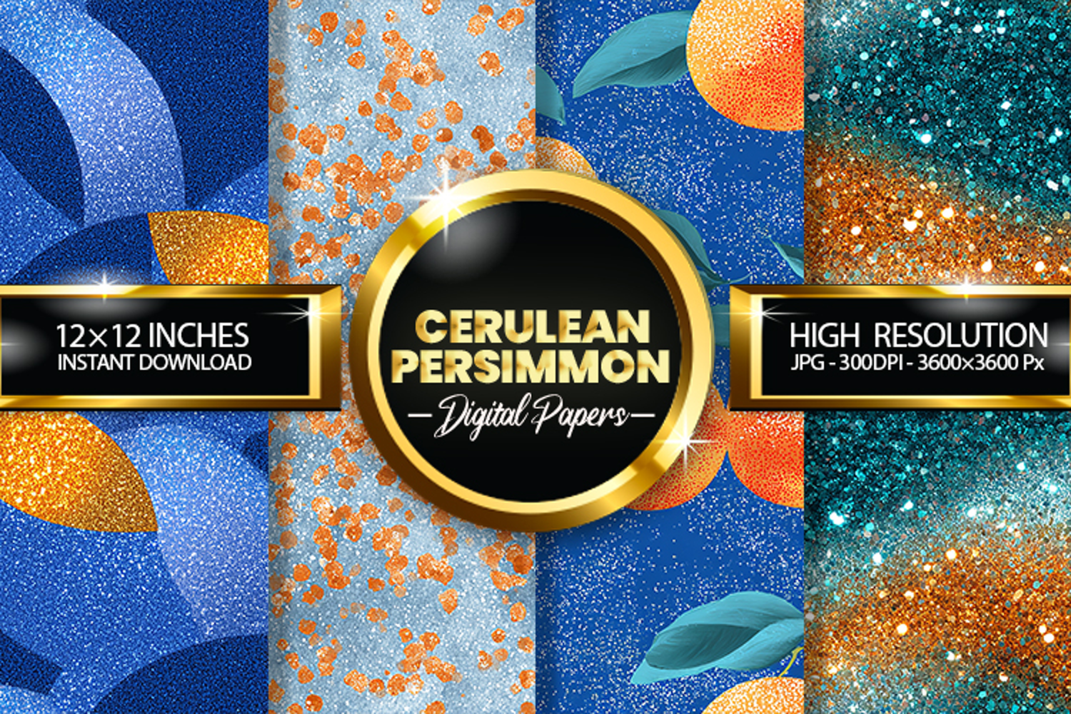 Cerulean Persimmon Glitter Digital Papers - 04 Variations