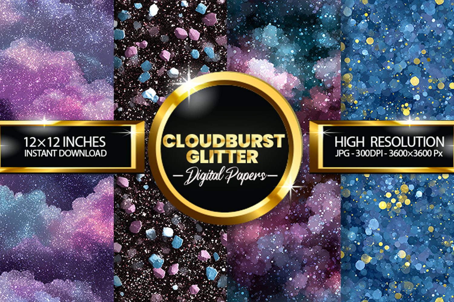 Cloudburst Glitter Digital Papers - 04 Variations