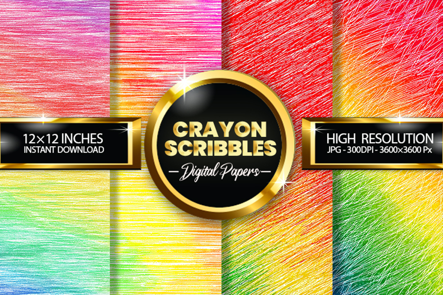 Similar Design Products to Crayon Scribbles Digital Papers - 04 Variations