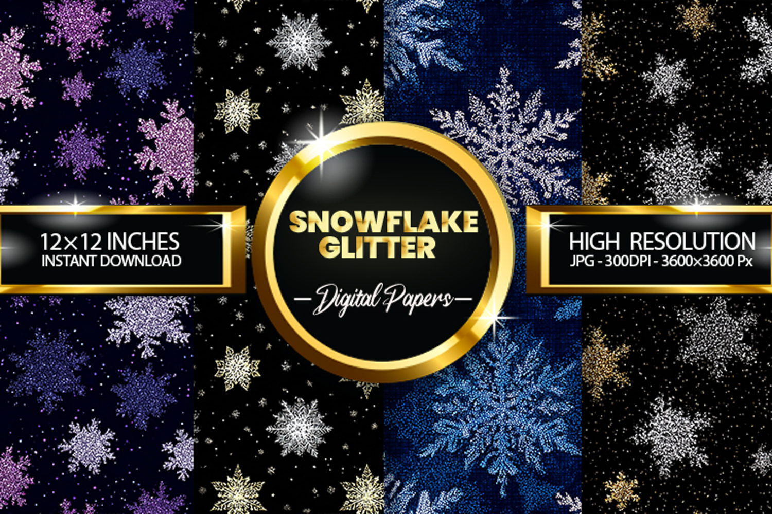 Snowflake Glitter Digital Papers - 04 Variations