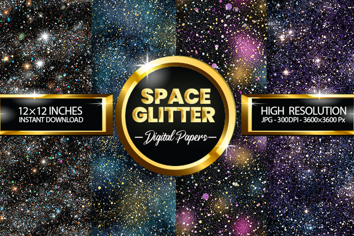 Space Glitter Digital Papers is perfect for Gift Wrapping, Promotional Items, Invitations, Wallpaper, Greeting Cards, Planners, Journals, Scrapbook, Notebook Covers, T-Shirts, Mugs, Tumbler, Puzzles, Crafting and much more. This Digital Paper is a popular choice for people on the go.