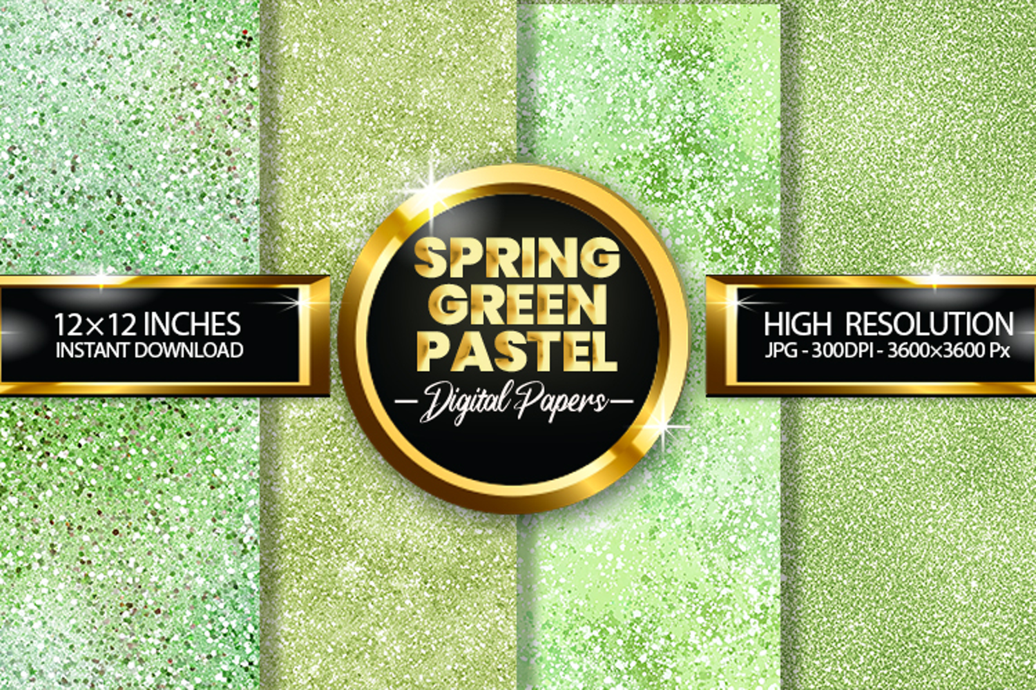 Spring Green Paste Glitter Digital Papers - 04 Variations