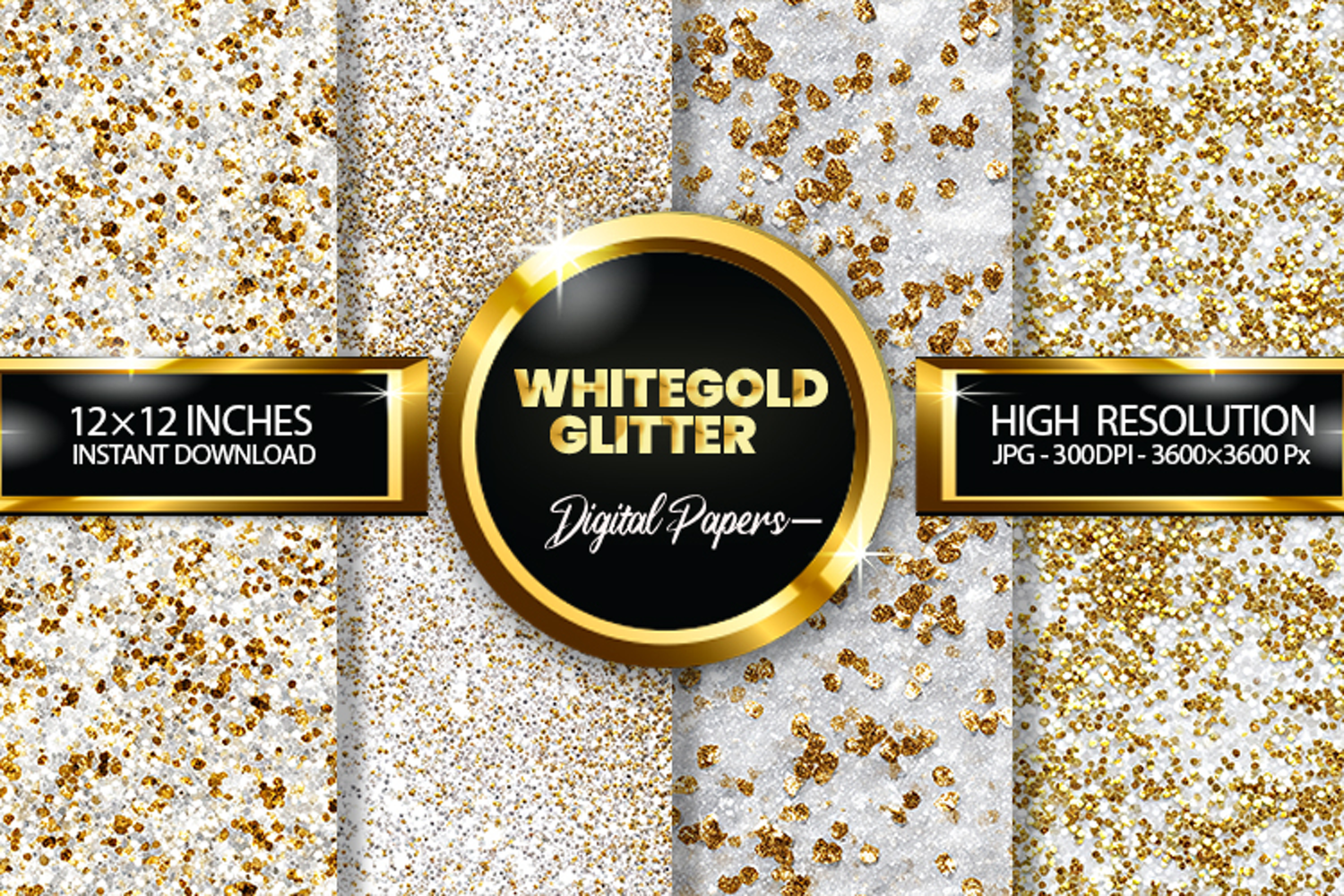 White Gold Glitter Digital Papers - 04 Variations