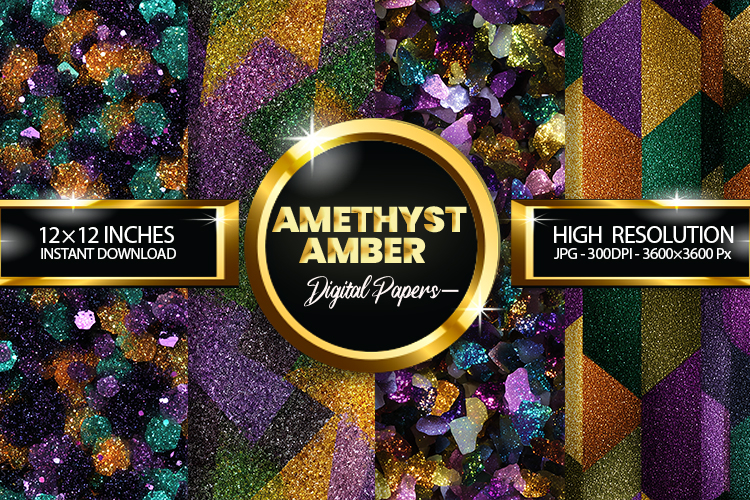 Amethyst Amber Glitter Digital Papers - 04 Variations