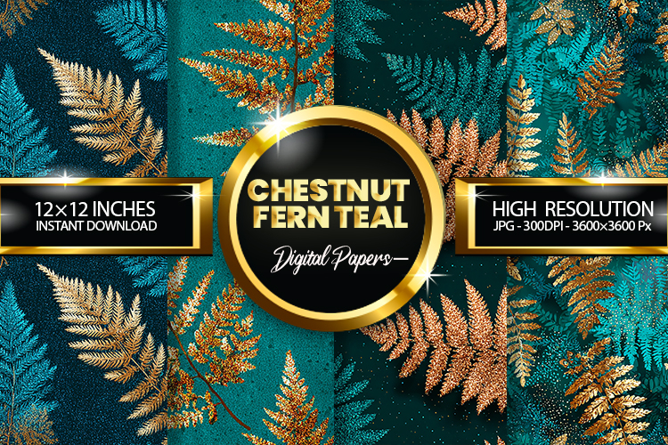 Chestnut Fern Teal Glitter Digital Papers - 04 Variations