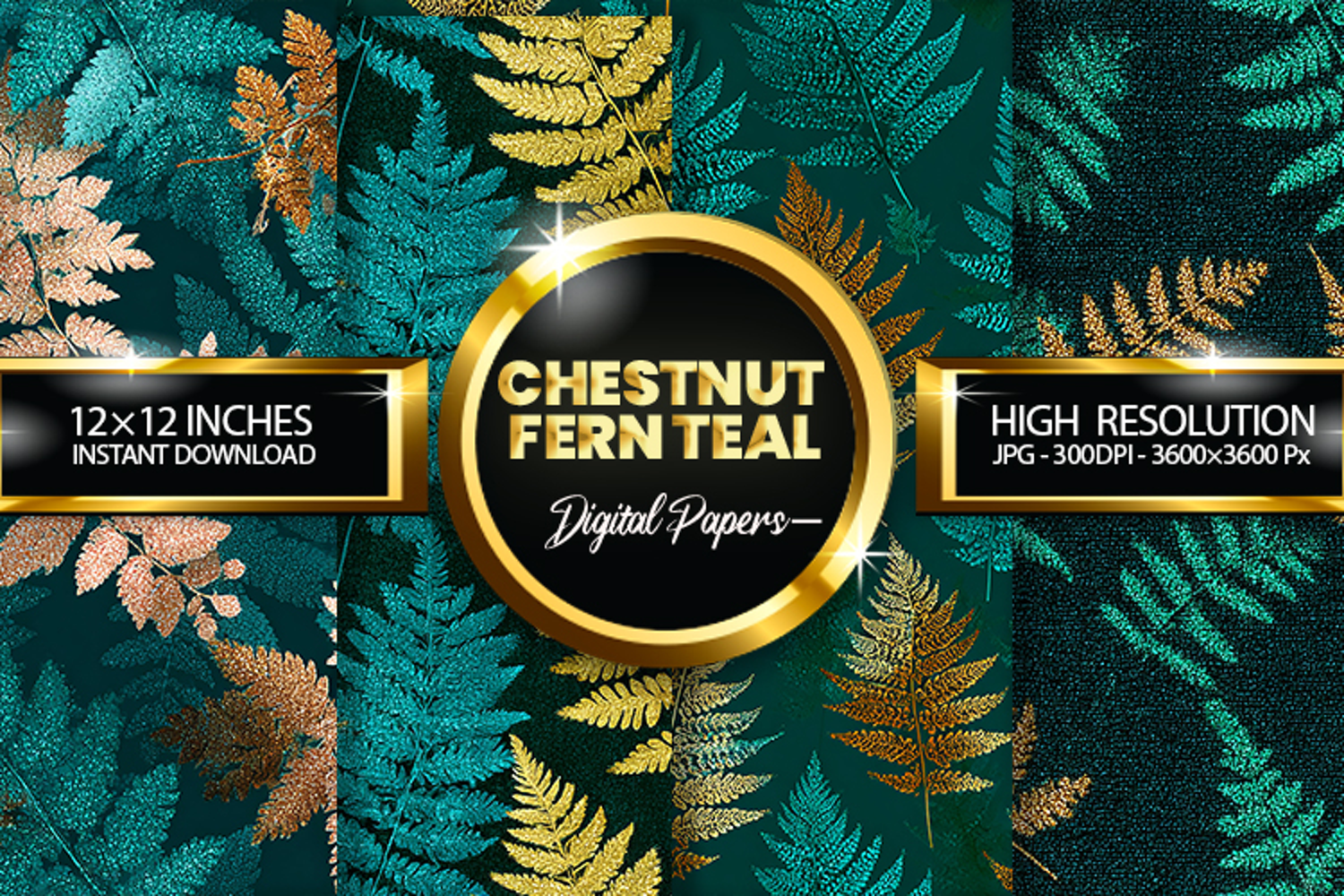 Chestnut Fern Teal Glitter Digital Papers - 04 Variations