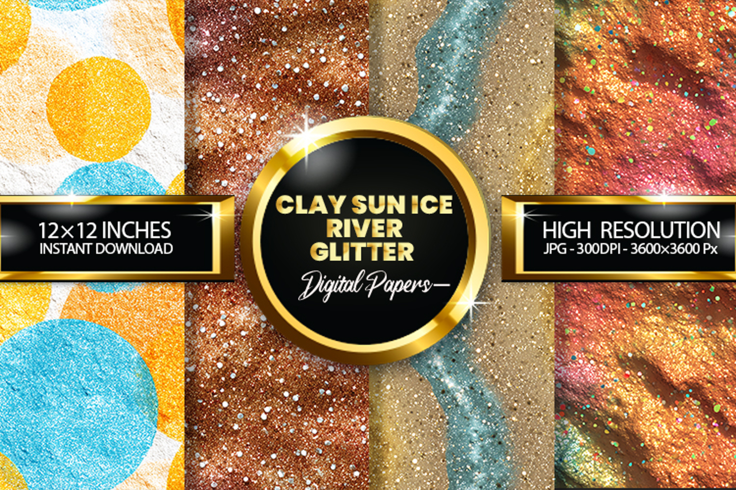 Clay Sun Ice River Glitter Digital Papers - 04 Variations