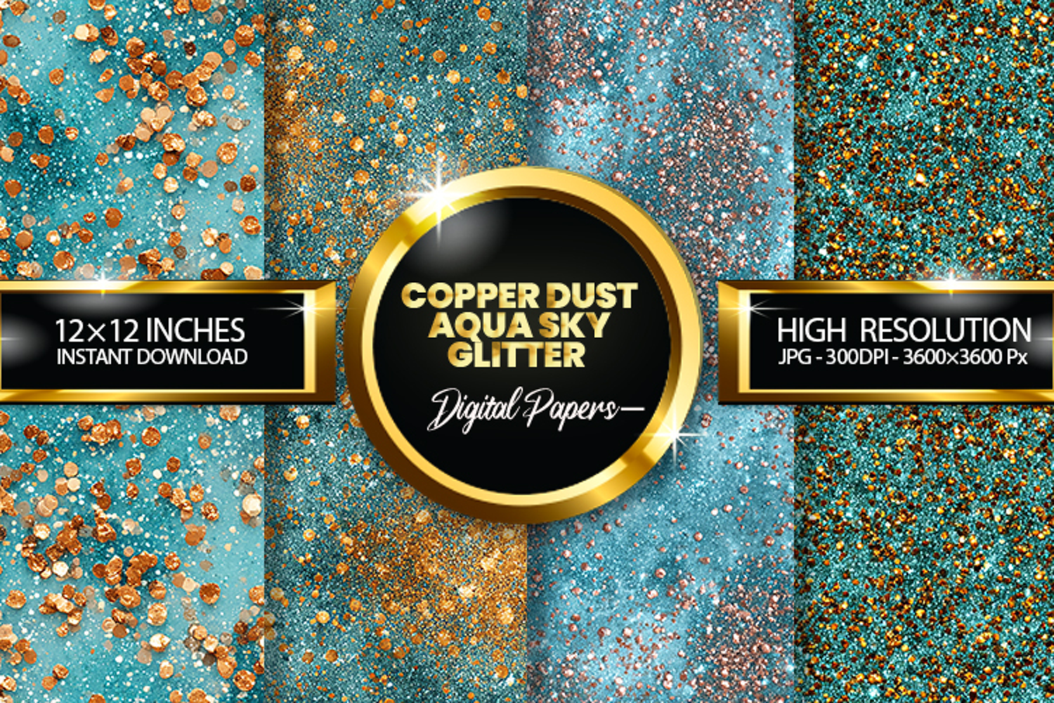 Similar Design Products to Copper Dust Aqua Sky Glitter Digital Papers - 04 Variations