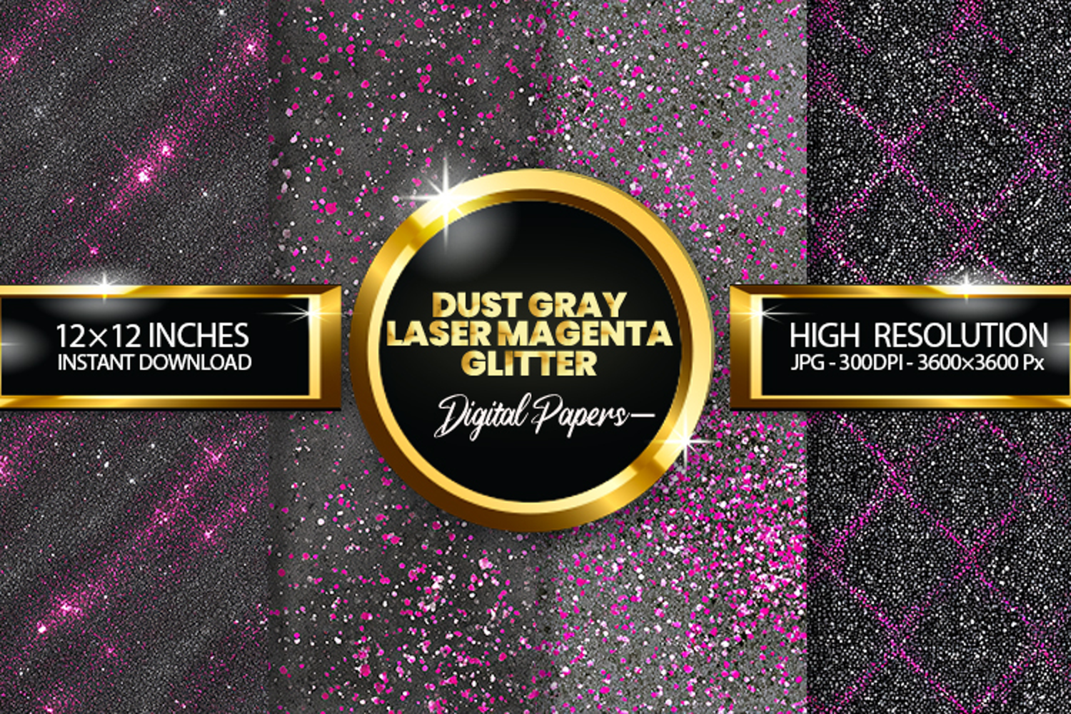 Dust Gray Laser Magenta Glitter Digital Papers - 04 Variat example image 1