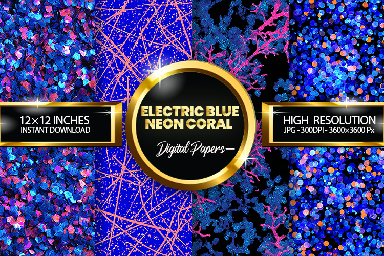 Electric Blue Neon Coral Glitter Digital Papers - 04 Variati