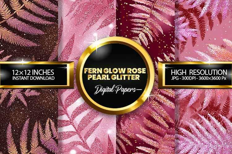 Similar Design Products to Fern Glow Rose Pearl glitter Digital Papers - 04 Variations
