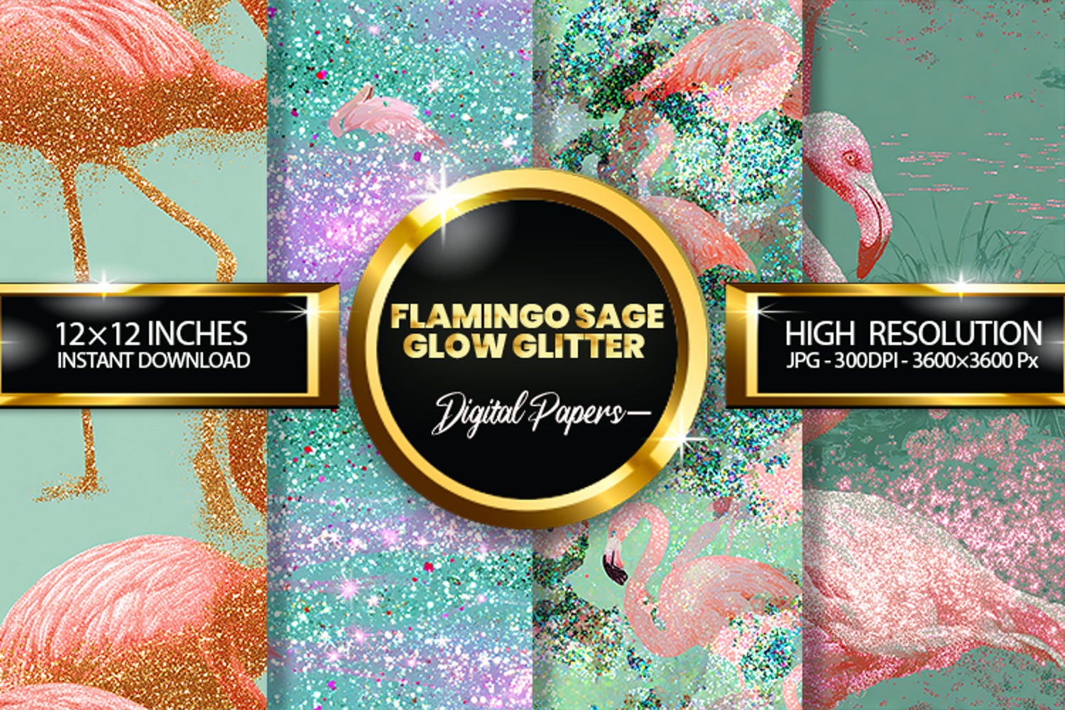 Similar Design Products to Flamingo Sage Glow glitter Digital Papers - 04 Variations